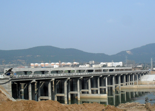 我公司2010年承建的大型市政災(zāi)后重建工程——四川省鹽亭縣梓江河橋閘工程,由兩座長270M,寬11.5M的橋梁夾一座大型水閘構(gòu)成。水閘全長202M,13孔×12M寬,采用6M×12M大型平板閘門,水閘50年一遇洪水下泄流量為7260M3/S,屬于大(I)型水閘項(xiàng)目工程。鹽亭縣梓江河橋閘工程現(xiàn)已按合同工期完工,正待驗(yàn)收,它的建成將極大地提升鹽亭縣新城區(qū)“城在水中,水邊有城” 的新景象,成為鹽亭縣城市建設(shè)一道靚麗的風(fēng)景線。