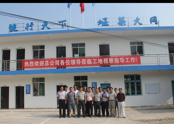 董事長(zhǎng)、總經(jīng)理王元旦到樟山防護(hù)工程項(xiàng)目部檢查指導(dǎo)工作,并在項(xiàng)目部生活樓前與相關(guān)人員合影