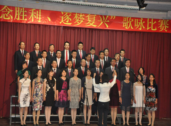 集團(tuán)資訊 9月24日,為慶祝中國人民抗日戰(zhàn)爭及暨法西斯戰(zhàn)爭勝利70周年,并歡慶中秋、國慶佳節(jié),江西省水利水電建設(shè)有限公司肯尼亞分公司參加了由中國駐肯尼亞大使館及肯中經(jīng)貿(mào)協(xié)會(huì)舉辦的第二屆合唱比賽。本屆比賽共有大使館、中航國際、中油石油、江西水建等十六家中資公司的幾百名人員參賽。