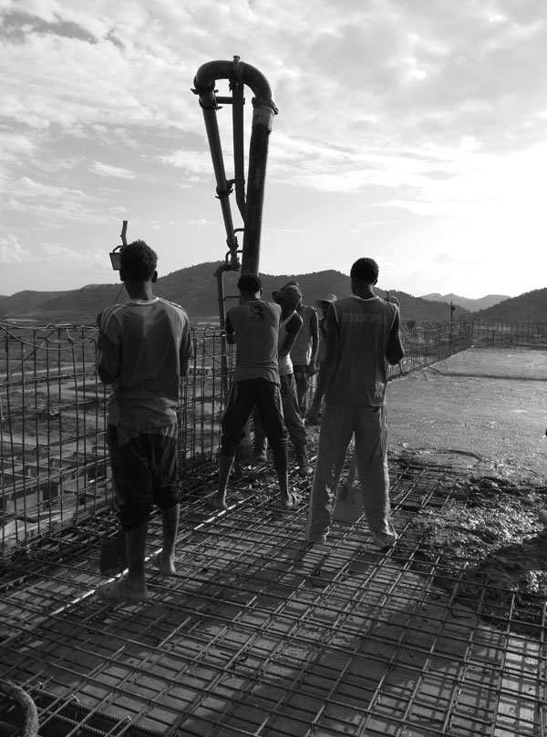 該項(xiàng)目位于接近赤道的埃塞俄比亞南部,素以氣候炎熱而著稱,施工條件頗為艱苦。施工過程中,項(xiàng)目部成員每天早出晚歸,常常一站就是一天,二十四小時連班也是家常便飯。在主廠房接近封頂?shù)年P(guān)鍵時刻,項(xiàng)目部全體員工有的夜里跟隨混凝土罐車執(zhí)行押車任務(wù),有的深夜依然堅(jiān)持在澆搗一線指揮作業(yè),連續(xù)奮戰(zhàn)數(shù)日,終于完成封頂大任。