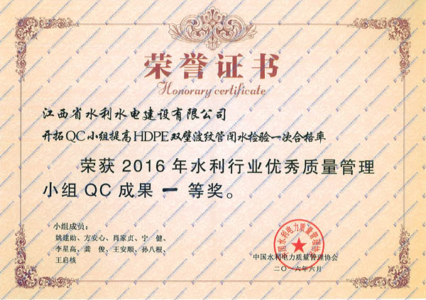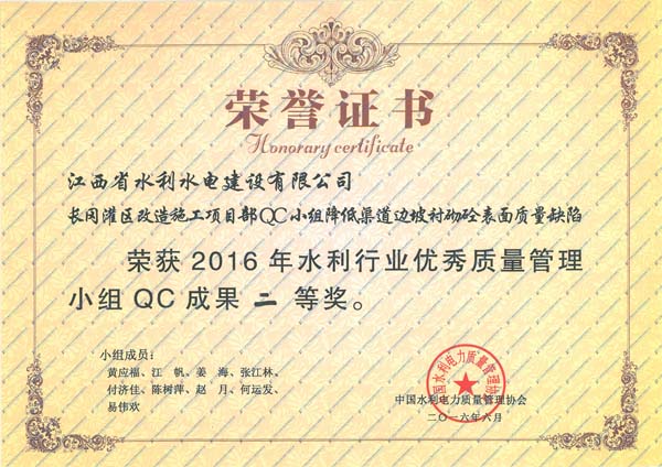 我公司5項(xiàng)QC成果獲得2016年水利行業(yè)優(yōu)秀成果獎(jiǎng)