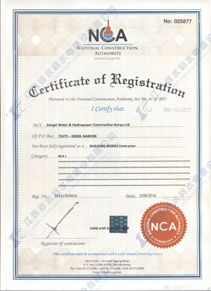 2013年3月份,肯尼亞國家建筑局(National Construction Authority)發(fā)出公告,要求所有在肯尼亞的建筑企業(yè),必須在肯尼亞建筑局注冊登記,提交相關資料,評出公司資質等級。