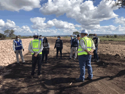 4月24日,在莫桑比克國家重點工程Corumana即將竣工的關(guān)鍵時刻,莫政府公共工程部常務(wù)副部長Cecilia Chamutota女士在國家水務(wù)局局長、國家自來水公司總經(jīng)理的陪同下,帶領(lǐng)政府相關(guān)部門負責人,視察項目建設(shè)情況。