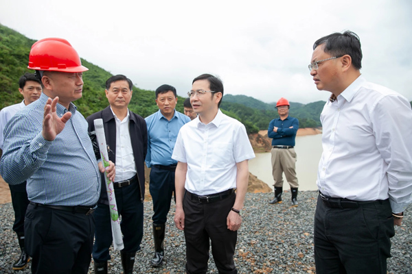 集團(tuán)資訊2021年5月21日上午,鷹潭市委書記黃喜忠深入由我集團(tuán)承建的貴溪市塘灣水庫除險(xiǎn)加固工程進(jìn)行實(shí)地調(diào)研,指導(dǎo)在建工程防汛備汛。塘灣水庫壩址以上控制流域面積22.6平方公里,總庫容1321萬立方米,灌溉面積1.43萬畝,電站裝機(jī)容量320千瓦。塘灣水庫除險(xiǎn)加固工程于2020年11月開工建設(shè),目前在各參建單位共同努力下,按計(jì)劃穩(wěn)步推進(jìn),主體工程有望在合同工期內(nèi)完工。黃喜忠登上水庫大壩,實(shí)地查看了項(xiàng)目建設(shè)進(jìn)展情況,并對(duì)水庫加固工程建設(shè)工作提出明確要求。他指出,要在確保質(zhì)量和安全的前提下,加快推進(jìn)項(xiàng)目建設(shè),確保早日建成見效。黃書記強(qiáng)調(diào),各參見單位在工作中要堅(jiān)持人民至上、生命至上,切實(shí)把確保人民生命安全放在第一位落實(shí)。