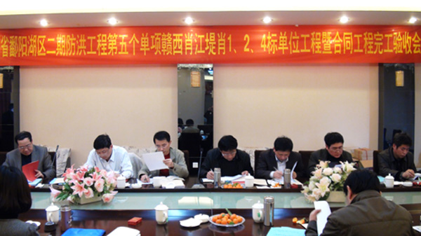 2012年3月24日,江西省鄱陽(yáng)湖區(qū)二期防洪工程第五個(gè)單項(xiàng)工程建設(shè)項(xiàng)目部在樟樹市主持召開了贛西肖江堤肖1標(biāo)單位工程暨合同工程完工驗(yàn)收會(huì)議,順利通過(guò)了驗(yàn)收,工程質(zhì)量等級(jí)評(píng)定為合格。