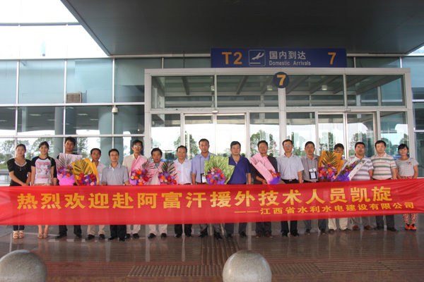 6月1日下午4時,公司首批援建阿富汗帕爾旺水利項目增項工程技術(shù)人員由阿富汗轉(zhuǎn)機烏魯木齊后,飛抵南昌昌北機場。董事長、總經(jīng)理王元旦、黨委副書記王延軍、副總經(jīng)理黃鄭民及部分職能部門員工前往機場迎接。