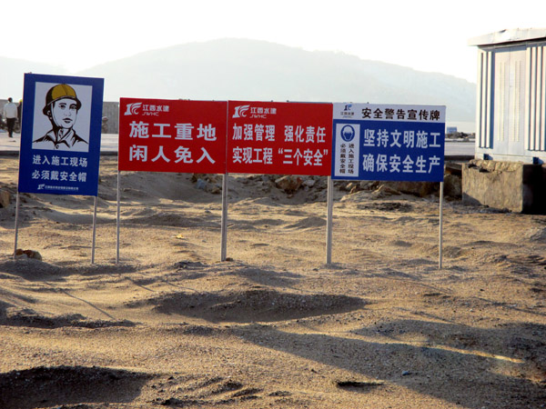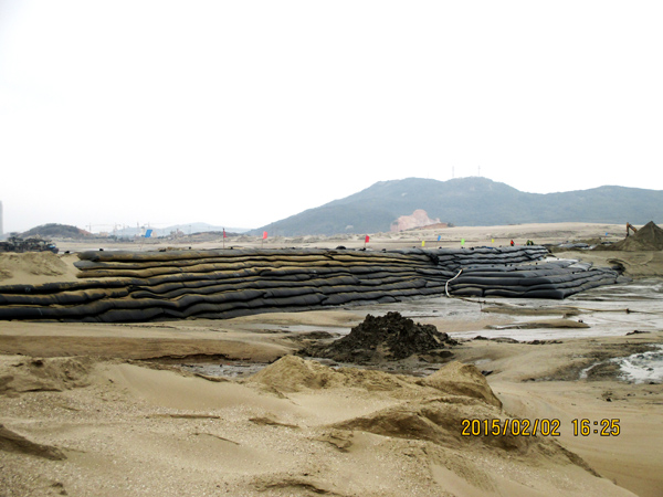 平潭綜合實驗區(qū),主島為海壇島,位于福建省東部,與臺灣隔海相望,是中國大陸距離臺灣島最近的地方,是中國第五大島,有福建的“馬爾代夫”之稱。平潭綜合實驗區(qū)如意湖防潮閘工程項目總投資1.3億元,我公司承建的土建工程包括排澇閘、防潮閘、公路橋、上下游兩岸翼墻、防沖消能、控制房等土建工程施工(含導(dǎo)流明渠開挖、圍堰填筑)。平潭(簡稱嵐)年平均風速超過五級以上,大風呼嘯,沒來這里感受不到風有多大!依據(jù)工程設(shè)計及進度要求,在落差8m潮汐中的軟基上進行圍堰模袋充砂以截流海水,在惡劣地質(zhì)條件的海中建閘,與潮水賽跑、跟臺風搶工期,潮起潮落,給工程建設(shè)平添了許多艱難與艱辛。