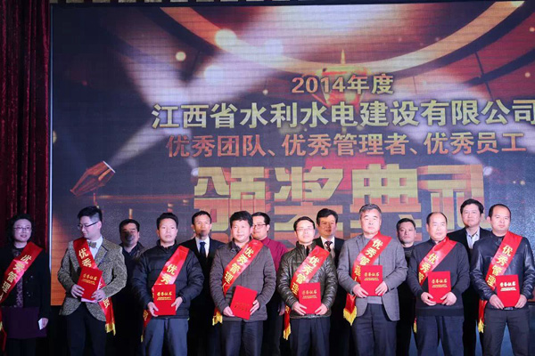 隨后,公司總經(jīng)理徐洪良宣讀了2014年優(yōu)秀表彰決定,并與公司領導班子一起,為雙河二期項目部等6個優(yōu)秀團隊、肖凱等10位優(yōu)秀管理者和周家煌等23位優(yōu)秀員工進行頒獎。徐總要求,希望受到表彰的先進集體和個人積極進取、再接再厲,以更加昂揚的斗志投入到今后的工作中,創(chuàng)造出更加輝煌的成績;希望各單位和廣大員工以優(yōu)秀團隊和先進個人為榜樣,加強學習,開拓創(chuàng)新,銳意進取,為江西水建燦爛的明天而努力工作!