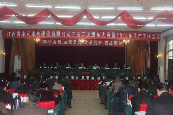 春回大地,萬象更新,正值全國兩會召開之際,江西省水利水電建設(shè)有限公司第三屆二次股東大會暨2015年生產(chǎn)工作會議,于3月10日在南昌隆重召開。公司董事、監(jiān)事、股東、中高層管理人員及員工代表共86名代表會聚一堂,共商公司改革發(fā)展大計,描繪企業(yè)美好藍圖。