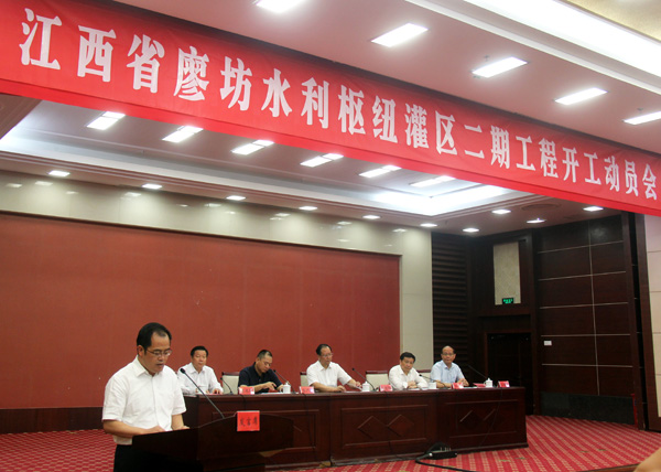 9月22日上午,廖坊水利樞紐灌區(qū)二期工程開工動員會召開。省委常委、常務(wù)副省長毛偉明出席并講話;市委書記肖毅主持,市委副書記、市長張鴻星致辭,水利部建管司副司長張嚴明、省發(fā)改委主任吳曉軍、省水利廳副廳長廖瑞釗參會并講話;公司總經(jīng)理徐洪良代表項目參建單位在會上作表態(tài)發(fā)言;省直有關(guān)部門領(lǐng)導(dǎo),撫州市四套領(lǐng)導(dǎo)班子成員,撫州市相關(guān)單位領(lǐng)導(dǎo)及項目參建各方代表參加了會議。