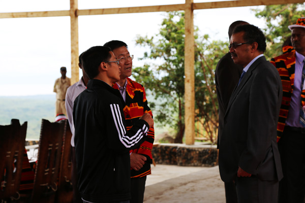 結(jié)束對我公司KURAZ項目視察后,覃儉參贊一行返回阿巴門奇市代表中國駐埃大使出席了阿巴門奇市建市50周年慶典活動及捐贈活動。埃塞俄比亞總理海爾瑪里亞姆及埃方外交部長接見中方一行,并握手致謝。郭惠明主任就江西水建在埃塞俄比亞的發(fā)展情況及南方州KURAZ項目的建設(shè)進(jìn)展情況向埃塞俄比亞總理、外長作了匯報?;顒咏Y(jié)束后,中方一行還多次分別與南方州政府相關(guān)要員進(jìn)行了會談。
