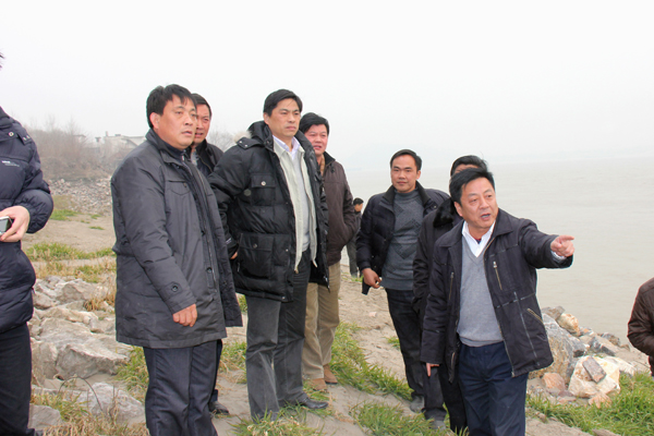 2011年1月14日,江西省水利廳廳長孫曉山在省河湖局、省水利規(guī)劃設計院相關領導、公司董事長總經理王元旦等的陪同下,前往我司承建的長江九江段棉船堤應急防滲工程視察工作。