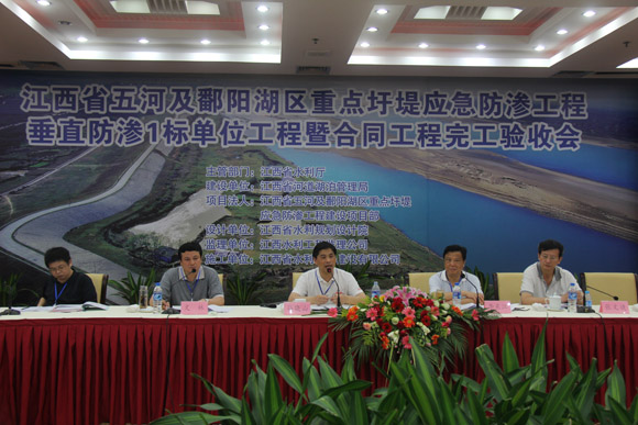 2011年5月8日,我公司承建的江西省五河及鄱陽湖區(qū)重點(diǎn)圩堤應(yīng)急防滲處理工程垂直防滲1標(biāo)單位工程暨合同工程完工驗(yàn)收會(huì)在南昌市召開。省水利廳廳長孫曉山,廳紀(jì)委書記李東江,副廳長文林、廳總工張文捷,省發(fā)改委、省財(cái)政廳、省水利廳有關(guān)處室及有關(guān)單位負(fù)責(zé)人,南昌市水利局等領(lǐng)導(dǎo)出席了會(huì)議。