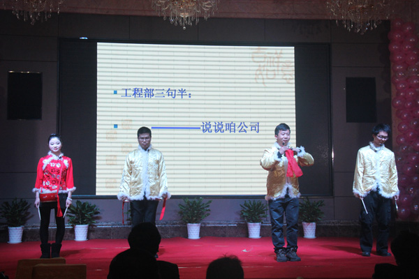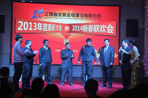 在隨后的新春聯(lián)歡會上,王總發(fā)表了熱情洋溢的新年賀詞,并代表公司董事會和領(lǐng)導(dǎo)班子,向全體員工、支持公司改革發(fā)展的離退休老同志和員工家屬,以及仍堅守在工作崗位的海內(nèi)外一線員工致以節(jié)日的祝福和誠摯的問候。王總在致詞中說,2013年是公司發(fā)展史上不平凡的一年,在公司董事會的正確領(lǐng)導(dǎo)下,全體員工以企業(yè)為家,團結(jié)一心、不畏艱難,腳踏實地、開拓創(chuàng)新,沿著年初制定的各項工作目標(biāo)努力奮進。公司各項事業(yè)繼續(xù)保持蓬勃發(fā)展的良好形勢,朝著質(zhì)量好、品牌優(yōu)、市場廣的集團型企業(yè)方向邁進。2013年,公司開拓進取、勇于突破,準(zhǔn)確定位、大膽決策,利用資本運作境內(nèi)外項目,以投融資帶動市場,在國內(nèi)嘗試承接BT項目,國外則跨行業(yè)進入投資領(lǐng)域,利用投資經(jīng)營提升企業(yè)競爭力。王總指出,公司在2013年取得了一系列優(yōu)秀的成績,兩項省級工法和兩項部級工法通過評審,內(nèi)部管理制度日益健全,爆破資質(zhì)、城市園林綠化資質(zhì)通過審核,在國際工程建設(shè)領(lǐng)域發(fā)展迅速,被譽為江西水利行業(yè)走向世界、開拓國際市場的排頭兵。