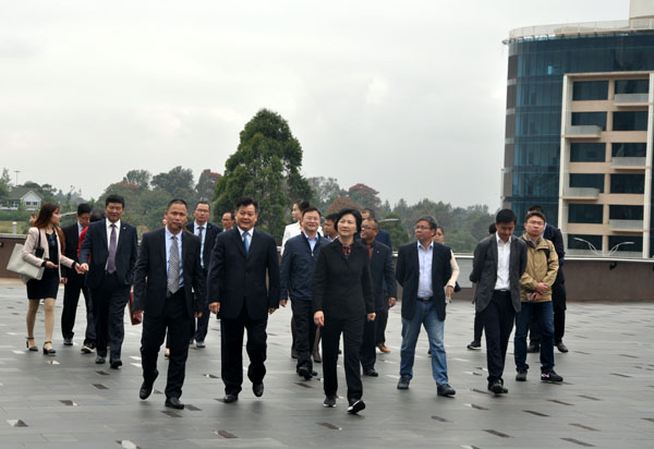 訪問團(tuán)一行首先參觀了雙河商貿(mào)中心,對(duì)雙河項(xiàng)目給予了充分肯定。座談期間,公司董事長王元旦及江西國際、江西中煤等駐肯企業(yè)代表逐一就企業(yè)在肯尼亞的發(fā)展情況進(jìn)行匯報(bào)。馮桃蓮主任充分贊揚(yáng)了江西企業(yè)在肯尼亞的各項(xiàng)優(yōu)秀業(yè)績,同時(shí)指出,在省委、省政府的正確領(lǐng)導(dǎo)下,希望各駐肯企業(yè)能夠緊密合作、抱團(tuán)發(fā)展,加強(qiáng)安全管控,提升企業(yè)抗風(fēng)險(xiǎn)能力,樹立良好的企業(yè)形象。