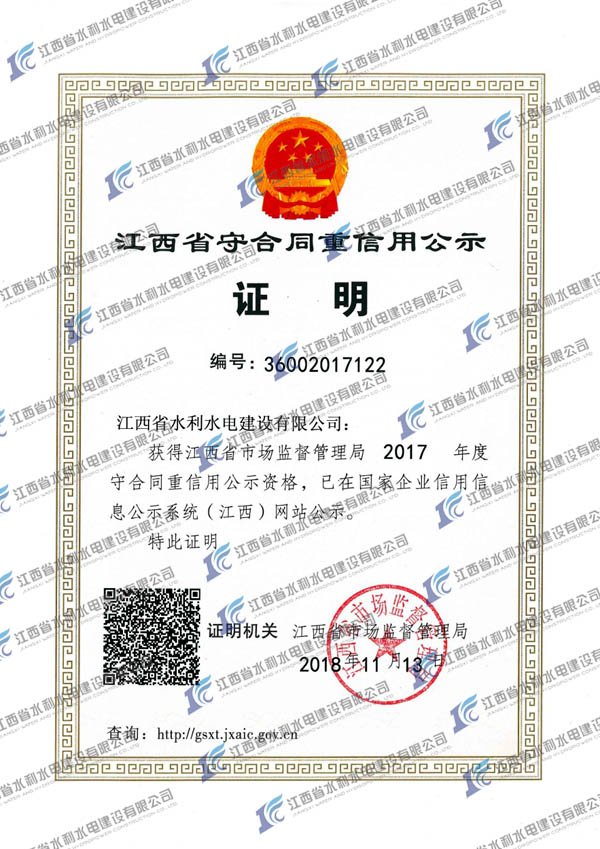 近日,公司憑借良好的口碑,再一次榮獲守合同重信用企業(yè)公示資格證明。