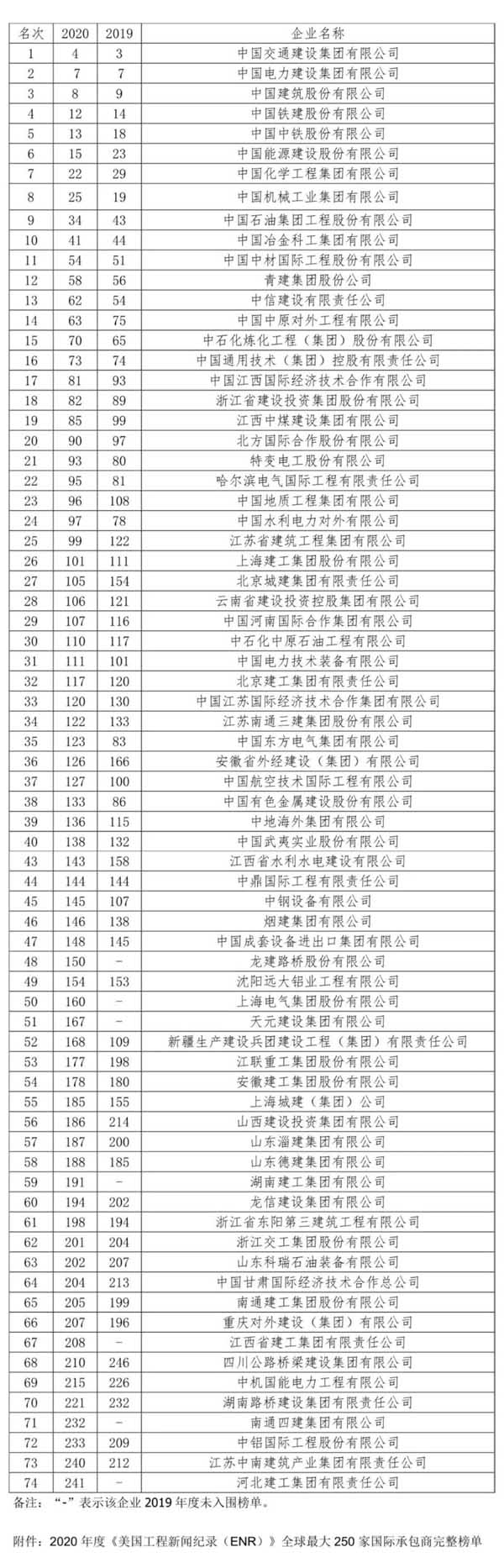 美國當?shù)貢r間8月20日,2020年度美國《工程新聞紀錄(ENR)》“全球250家國際承包商”榜單發(fā)布。