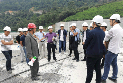 第二站,學習團來到新屯水庫,跟隨著項目管理團隊參觀了導流隧洞、上壩公路、主壩施工區(qū)、進水塔、溢洪道、沉降觀測室、料場、復建公路等施工區(qū)域,隨后由項目副經(jīng)理向國華、測量負責人鄒國群及質量負責人廖軼先分別就各自負責的工作內(nèi)容向學員們進行了現(xiàn)場授課。通過現(xiàn)場學習,學員們了解到該工程七大特點。
