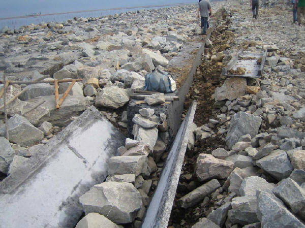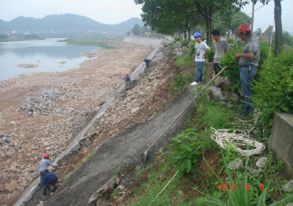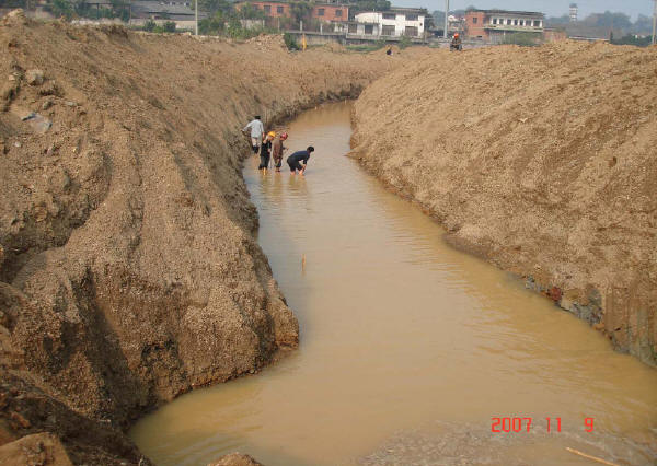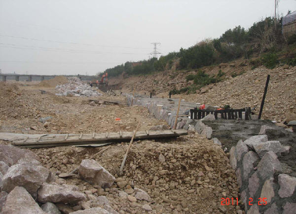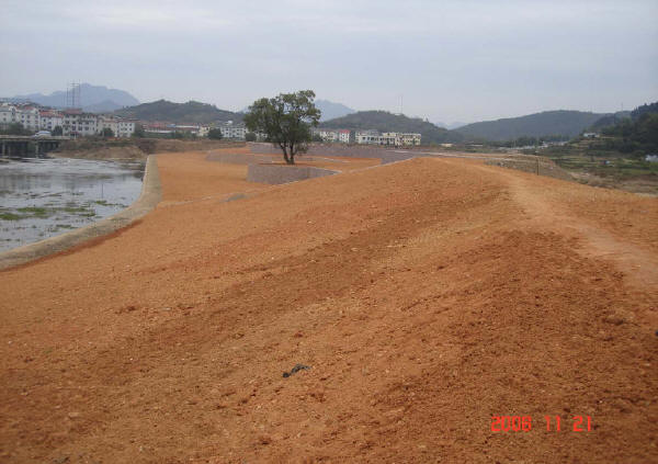 堤基清理:必須對(duì)堤內(nèi)、外坡腳線外1m范圍內(nèi)的亂石、墳?zāi)?、各種建筑物和垃圾、雜草、樹木、樹根、腐植土及淤泥全部清除,并棄至背水坡腳以外或指定場(chǎng)地,水井、泉眼、洞穴等按設(shè)計(jì)要求處理,并經(jīng)驗(yàn)收確認(rèn)合格為止。