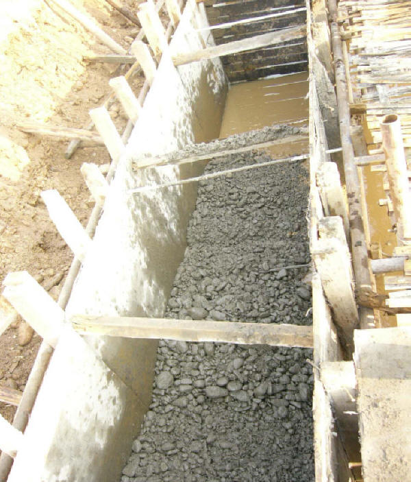 基坑開挖:驗(yàn)收前,施工單位應(yīng)對(duì)地下水或地表水作妥善引排或封堵,清理積渣雜物,作好高程、軸線的測(cè)量復(fù)核、記錄,并設(shè)樁拉線。驗(yàn)收合格后,方可安排砌石或澆筑混凝土。