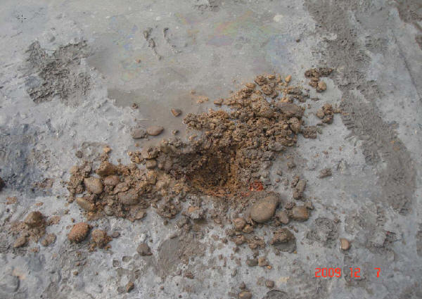 重點(diǎn)檢查:原材料檢驗(yàn)記錄;土料擊實(shí)試驗(yàn)和碾壓試驗(yàn);重點(diǎn)是土石結(jié)合部的土料填筑質(zhì)量;是否按碾壓試驗(yàn),采用的土料、填筑方式、填筑鋪土厚度、碾壓工藝,壓實(shí)質(zhì)量(壓實(shí)后密度相對(duì)密度、壓實(shí)度)是否滿足設(shè)計(jì)和施工規(guī)范的要求。