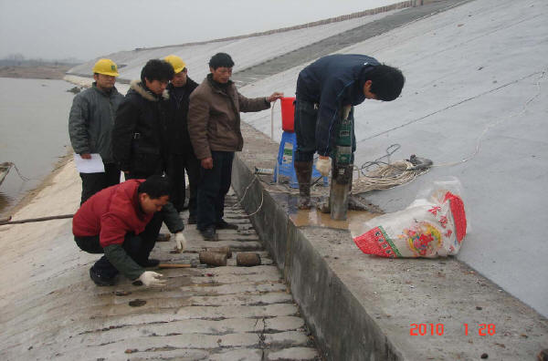 ※ 重點(diǎn)檢查水庫的險(xiǎn)情是否已按設(shè)計(jì)要求給予消除;工程質(zhì)量是否按規(guī)定檢驗(yàn),各項(xiàng)檢測(cè)數(shù)據(jù)是否滿足設(shè)計(jì)要求或相關(guān)標(biāo)準(zhǔn):土方的壓實(shí)度、滲透系數(shù);混凝土(含預(yù)制塊)的抗壓強(qiáng)度、抗凍、抗?jié)B、彈性模量;砂漿的抗壓強(qiáng)度;灌漿的壓水試驗(yàn)結(jié)果(透水率Lu):固結(jié)灌漿≮5%、帷幕灌漿≮10%。