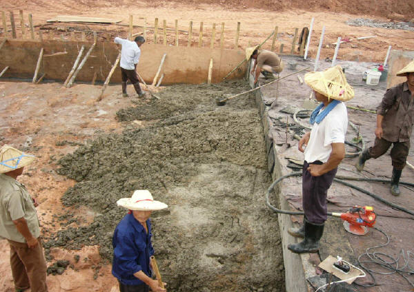 基礎(chǔ)混凝土澆筑前必須排干積水,不得帶水澆筑。